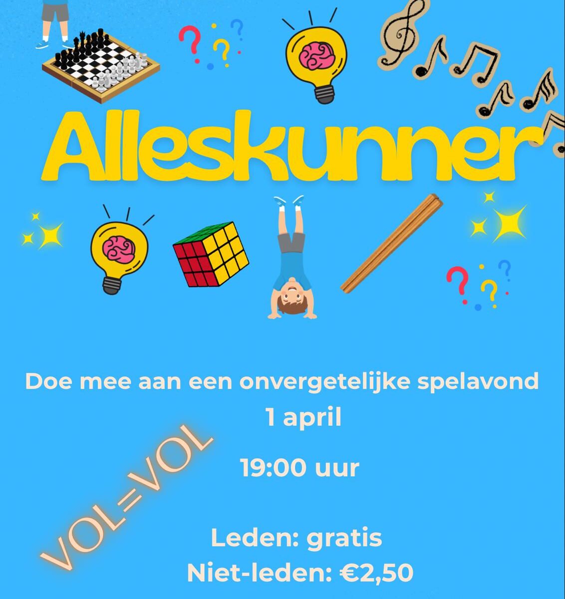 Alleskunner Date: 1 april, 2026 Add to Calendar Google CalendarMicrosoft OutlookApple CalendarDownload Time: 19:00 - 23:00 Calendar: Openbaar